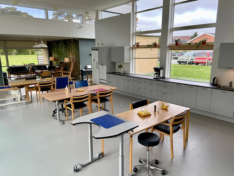 Der er gode fællesfaciliteter både inde og ude. Inde er fælleskøkkenet og fællesstuerne de naturlige samlingssteder i løbet af dagen, og når der skal hygges om aftenen. Derudover er der et træningsrum og et sanserum, som bruges flittigt med henblik på at stimulere sanser og motorik. Udenfor er der en stor og dejlig terrasse og et drivhus, som bruges til både sanseoplevelser, ophold og forskellige aktiviteter.